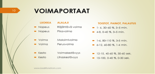 Voimaportaat ja niiden merkitys tavoitteen kannalta. Lihaskestävyys, perusvoima ja nopeusvoima