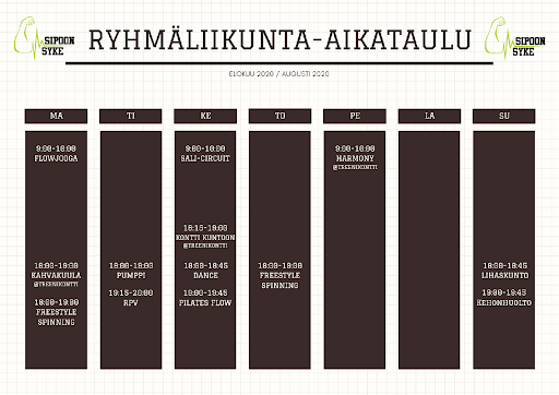 Syksyn ryhmäliikunta-aikataulu starttaa 31.8.2020